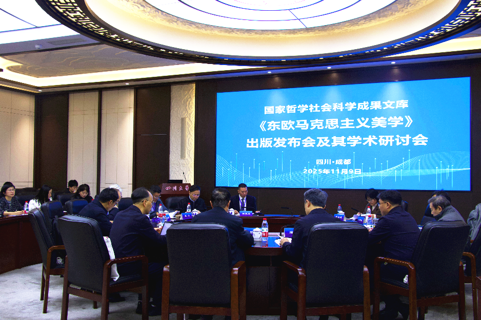 11月9日,2024年度国家哲学社会科学成果文库《东欧马克思主义美学》新书发布会及其学术研讨会于四川大学举行。四川大学党委副书记刘晓虎教授、四川省社科联党组副书记黄进、中央党史和文献研究院第四研究部副主任胡长栓、四川新华出版发行集团董事长周青、科学出版社副总经理闫向东、四川大学社会科学研究处副处长查庆出席了本次新书发布会。发布会由四川大学文学与新闻学院学术院长曹顺庆教授主持。